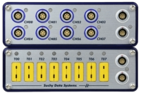 基于每个通道采用24 sigma-delta 转换器的非多路复用解决方案,可实现低至40µV 输入通道分辨率。在整个±20伏输入范围内,无噪声测量结果通常小于1mV 所有输入均为差分类型,可有效降低地环路的影响。 每个输入插座为各传感器提供稳定的5V12V电源供应。因此无需额外为传感器配备外部 电源。每个传感器可从系统中提取10mA电流。 在更复杂的系统中,为增加输入通道数量,可串联最多8个模块。这将允许通过单个CAN 接口传输最多64个通道。 所有单个通道均可固定以100 Hz的数据速率进行采样。